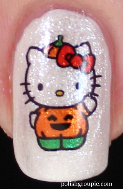 I saw these really cute Halloween-themed Hello Kitty water decals on eBay and had to have them. I bought them from RLR Creations. I actually had originally ordered some witch ones that I was going to use for the Day 8 Witch theme, but Rachel accidentally sent these instead. But she was very quick to rectify the situation by offering me a free set, so keep an eye out for a pilgrim-themed manicure around Thanksgiving!
